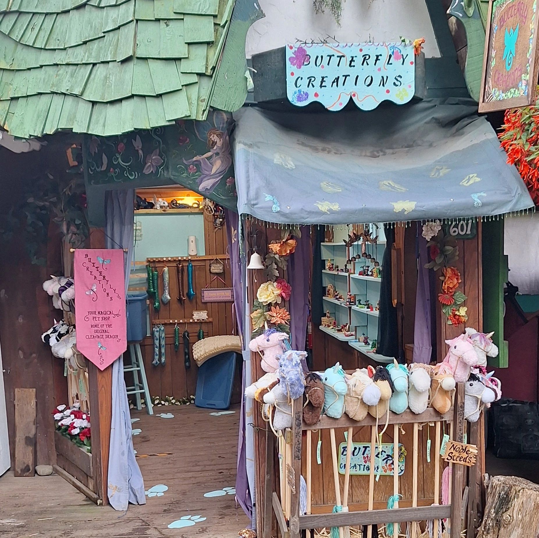 Welcome to my wonderland. My name is Erica (Dame Aelonwyn), Artist behind Butterfly Creations. You may have seen me around the shop at the Michigan Renaissance festival before, that is because I have been the apprentice to Paula (Lady Dragonfly) for 11 years now, good golly gosh it doesn’t seem that long! At the end of the 2023 MIRF season, I took the big leap, and I purchased the shop/ business from Lady Dragonfly, to carry on her wonderful legacy of creating magic, and bringing joy to the world through what we create. I am so very excited to begin this journey, and to see where it takes me.